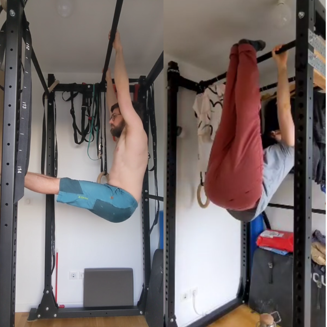 You don’t need a gym membership or fancy equipment. You only need gymnastic rings, a wall, yoga blocks, and resistance bands.
